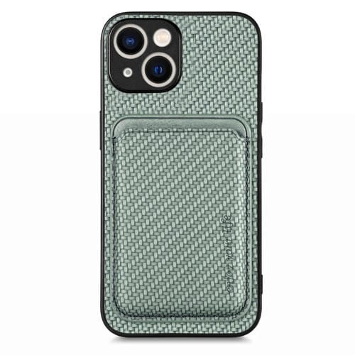 Funda para Teléfono iPhone 15 Magsafe con Tarjeta Cuero Fibra de Carbono (Verde)
