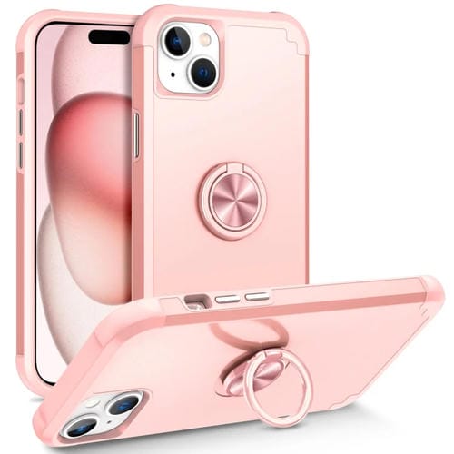 Funda Magnética para Teléfono iPhone 15 L2 con Soporte de Anillo Giratorio (Oro Rosa)