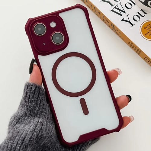 Película de Lente + Estuche TPU para iPhone 15 Magsafe Cuerno Magnético Acrílico (Rojo)