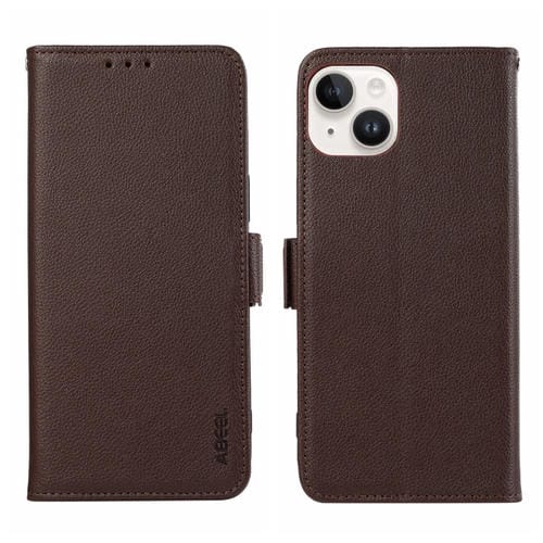 Funda para Teléfono Abeel iPhone 15 Plus Rfid Cuero Patrón Litchi Magnético (Marrón)
