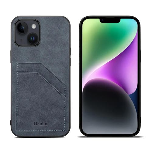 Funda Trasera para iPhone 15 Plus Denior Pu Ranura para Tarjeta Dual (Gris)