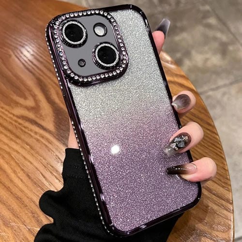 Estuche para teléfono TPU iPhone 15 Plus con brillo degradado de diamante (Púrpura Degradado)