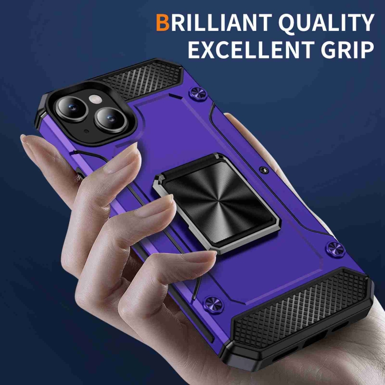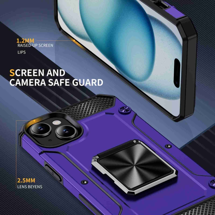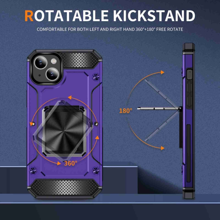 Funda para Teléfono iPhone 15 Plus con Soporte de Metal a Prueba de Golpes (Púrpura)