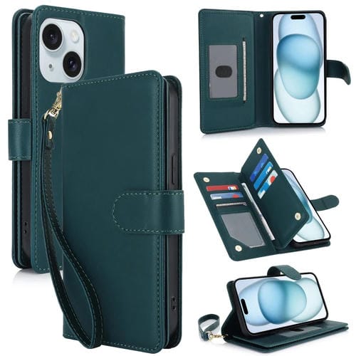 Funda para Teléfono iPhone 15 Plus Cuero Rfid con Billetera MultiTarjeta (Verde)