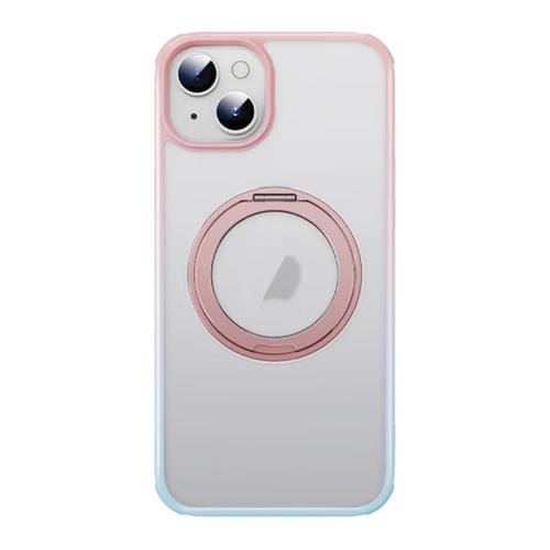 Funda para teléfono iPhone 15 Plus Magsafe Holder PC Hybrid TPU (Rosa Azul)