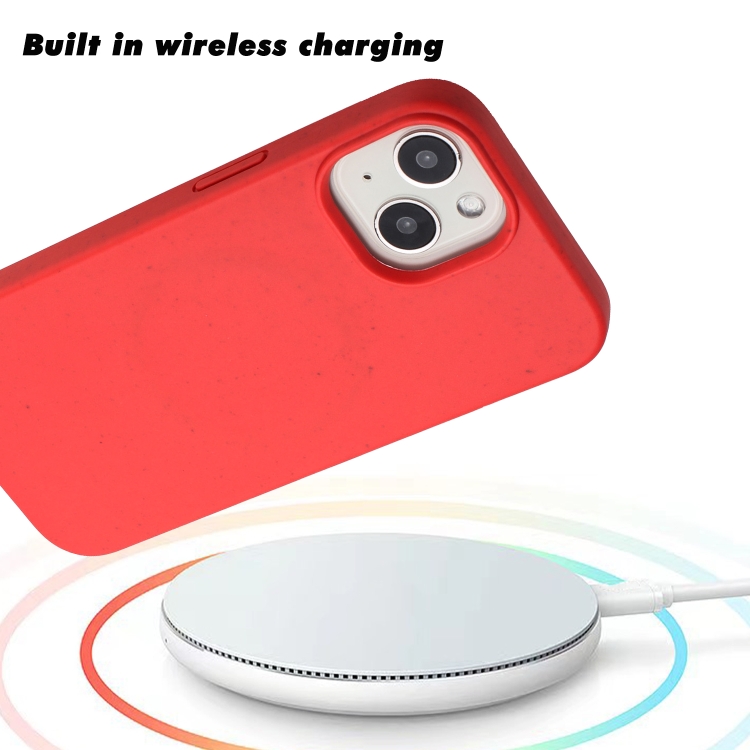 Funda para Teléfono iPhone 15 Plus Material de Paja Magnético Magsafe de Trigo + TPU (Rojo)