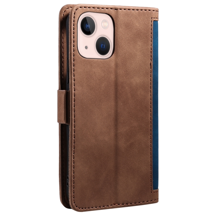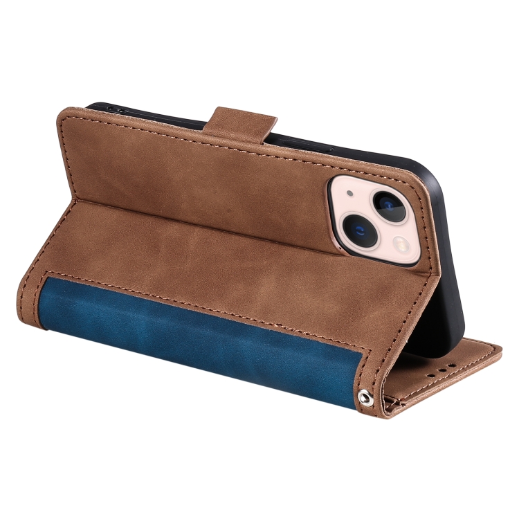 Funda para iPhone 15 Plus Retro Splicing Horizontal Flip de Cuero (Azul)