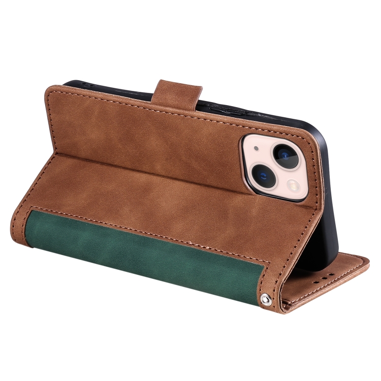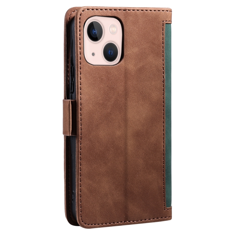 Funda para iPhone 15 Plus Retro Splicing Horizontal Flip Leather Case (Verde)