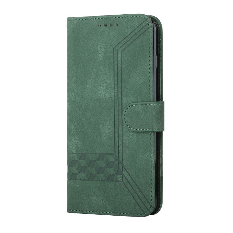 Funda para iPhone 15 Pro Cubic Skin Feel de Cuero con Tapa (Verde)