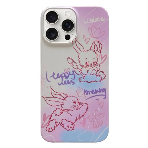 Estuche para Teléfono iPhone 15 Pro con Patrón Pintado PC (Conejito de Línea Rosa)