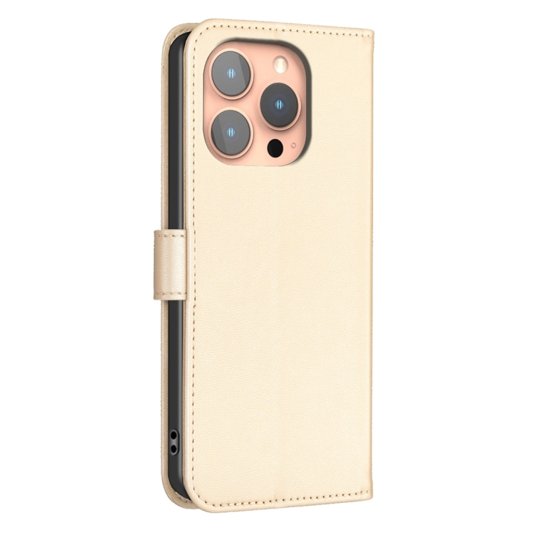 Funda para Teléfono iPhone 15 Pro Cuero Relieve Cuatro Hojas (Dorado)