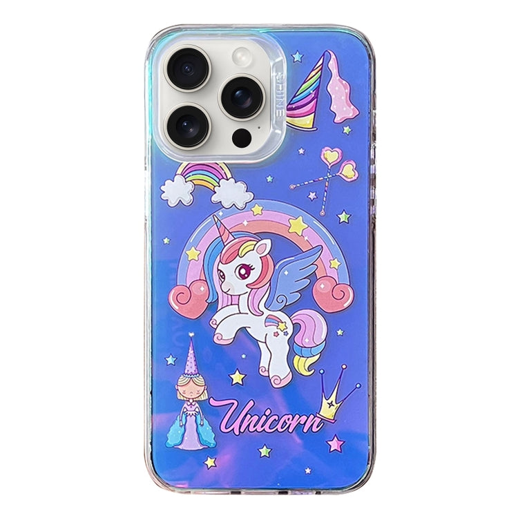 Funda para Teléfono iPhone 15 Pro TPU + PC con Patrón Colorido (Unicornio Arcoíris)