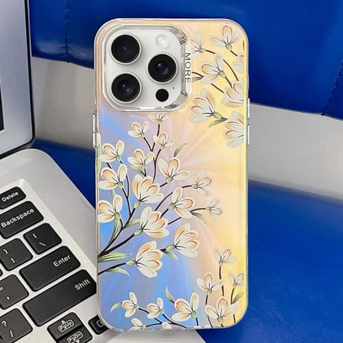 Funda TPU para iPhone 15 Pro Galvanoplastia Láser Flor Textura (Pear Blossom Ah17)