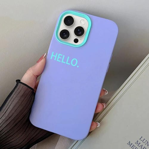 Estuche híbrido para teléfono iPhone 15 Pro Hello Word PC TPU (Púrpura)
