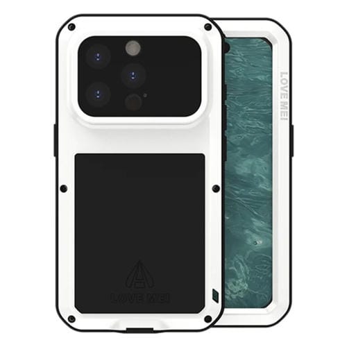 Funda para iPhone 15 Pro Love Mei Caja de Teléfono a Prueba de Polvo Impermeable Metal Blanco