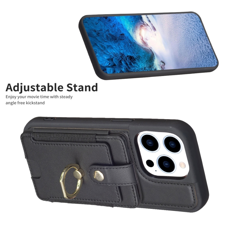 Anillo de Metal Tarjeta Bolsa Titular Caja para iPhone 15 Pro Max Bf27 (Negro)