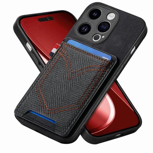 Funda para Teléfono iPhone 15 Pro Max Denim Texture Leather Skin con Ranura para Tarjeta (Negro)