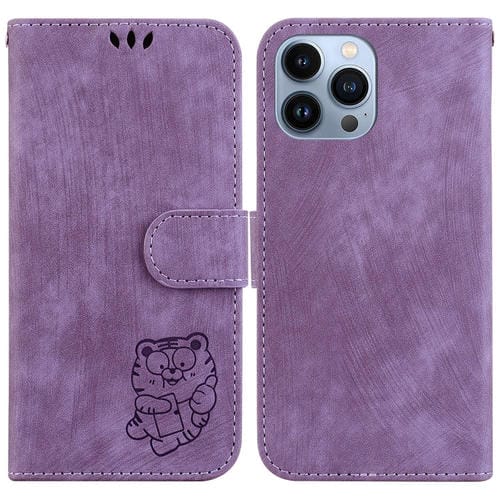Funda para Teléfono iPhone 15 Pro Max Cuero con Relieve Little Tiger (Púrpura)