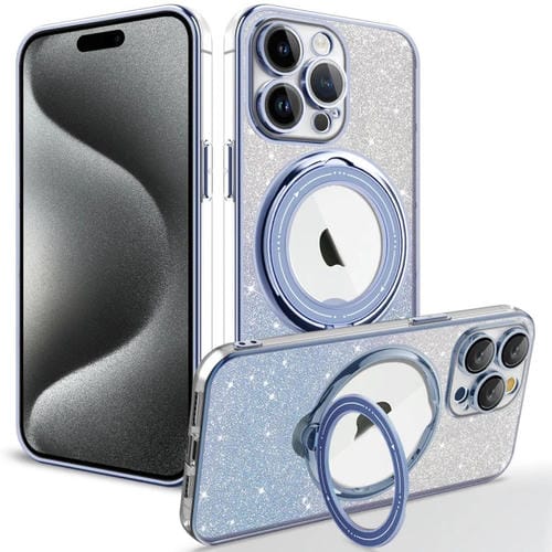 Estuche para teléfono iPhone 15 Pro Max Rotación Magsafe Holder TPU con Brillo Degradado (Azul Sierra)