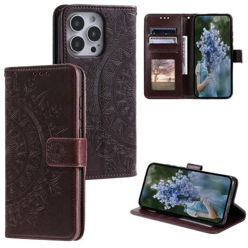 Estuche para Teléfono iPhone 15 Pro Max Totem Flower Cuero En Relieve (Marrón)