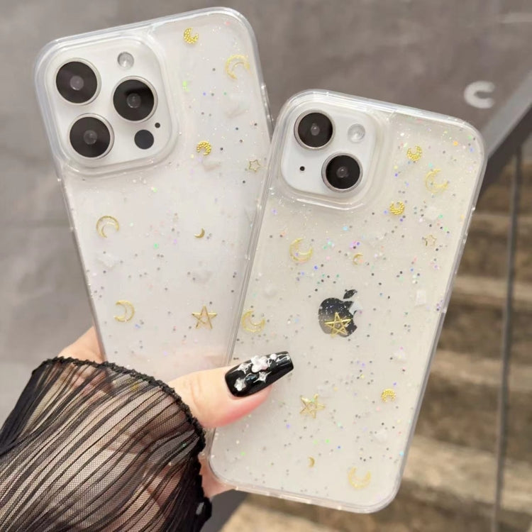 Funda para teléfono iPhone 15 Pro Moon Star Shell Glitter Epoxy TPU (Transparente)