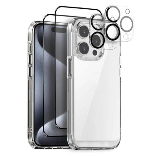Funda para iPhone 15 Pro Northjo 5 en 1 con 2 Películas de Pantalla y 2 Películas de Lente Trasera (Transparente)