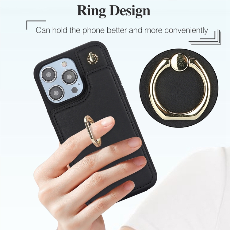 Funda para Teléfono Ym005 Skin Feel Card Bag para iPhone 15 con Cordón Largo (Negro)