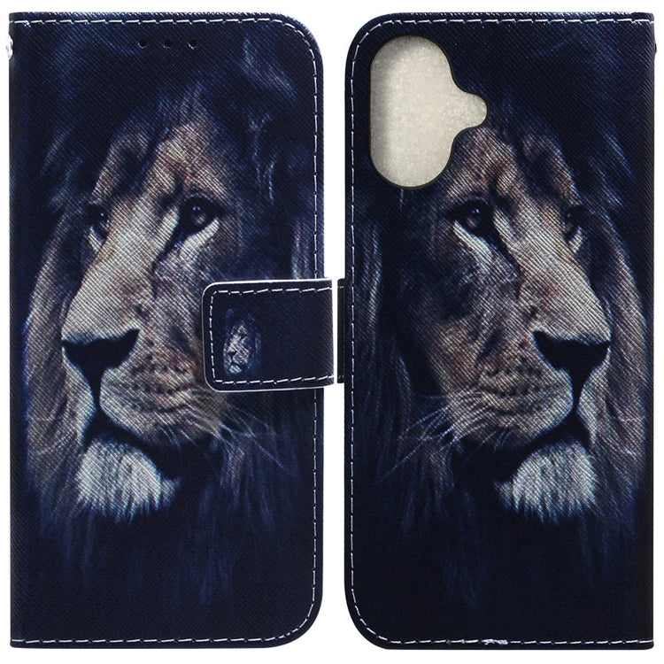 Funda de Cuero para iPhone 16/16 Plus con Tapa y Dibujo Coloreado (León)