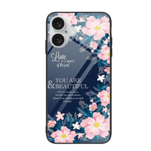 Estuche para Teléfono iPhone 16 Plus Vidrio Pintado de Colores Flor