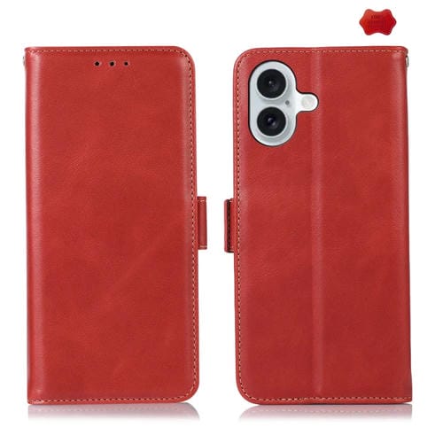 Funda para Teléfono iPhone 16 Plus Cuero de Vaca Capa Superior Crazy Horse (Rojo)