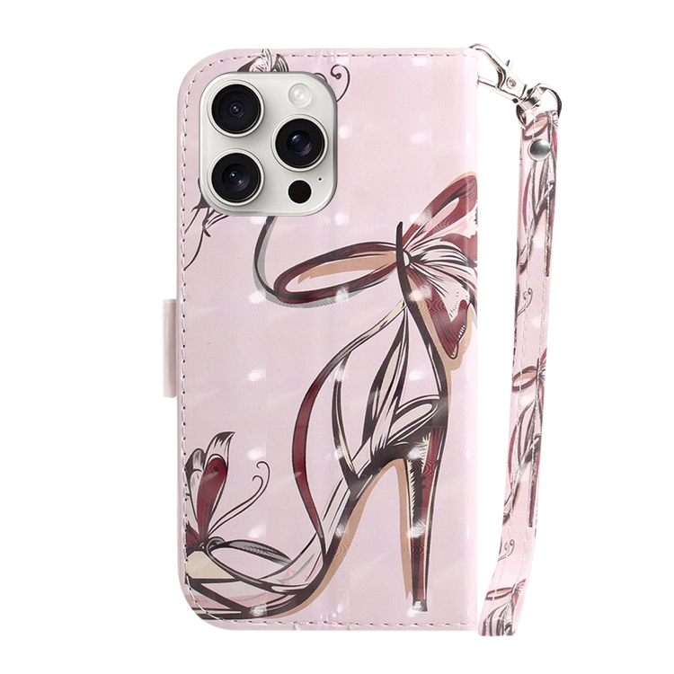 Funda de Teléfono iPhone 16 Pro Cuero con Tapa Horizontal Color 3D (Mariposa de Tacón Alto)