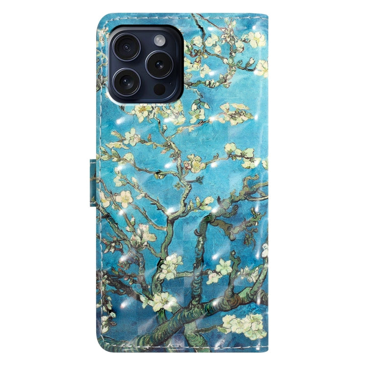 Funda para iPhone 16 Pro Max de Cuero con Patrón 3D Flor de Albaricoque (Azul)