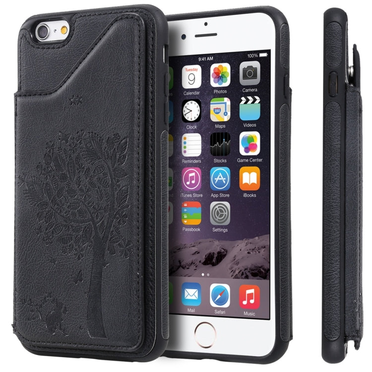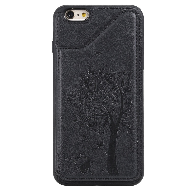 Funda Protectora para iPhone 6 con Patrón de Relieve Árbol de Gato Ranuras para Tarjetas y Marco de Fotos (Negro)