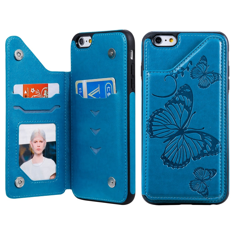 Funda Protectora iPhone 6 Plus Estampado Mariposa Soporte Ranuras Tarjetas Marco Fotos (Azul)