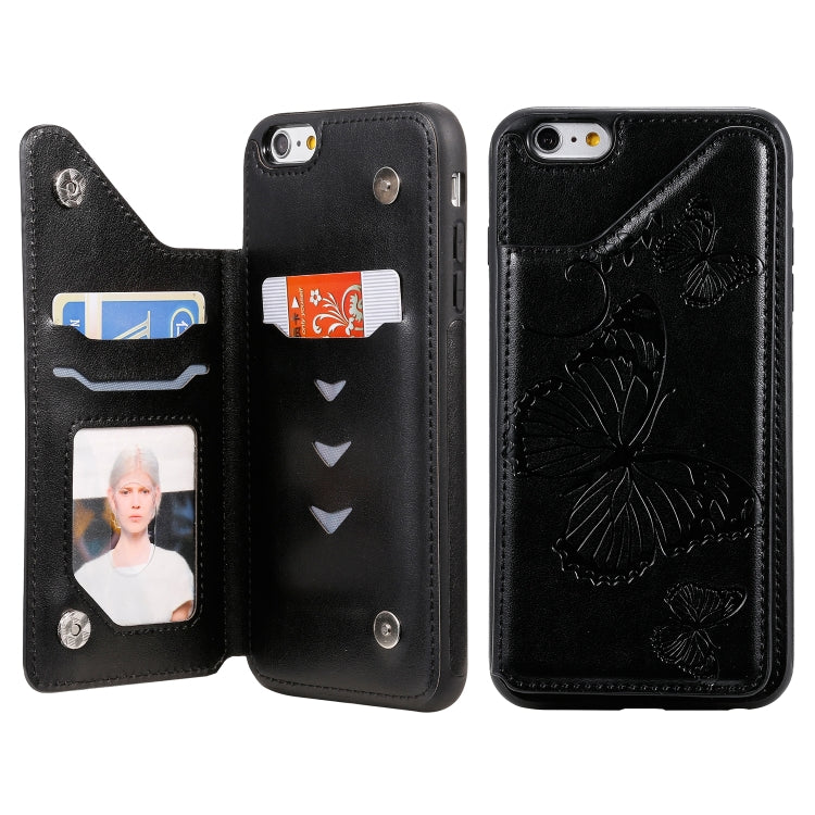 Estuche Protector para iPhone 6 Plus Patrón de Mariposa a Prueba de Golpes con Soporte y Ranuras para Tarjetas (Negro)