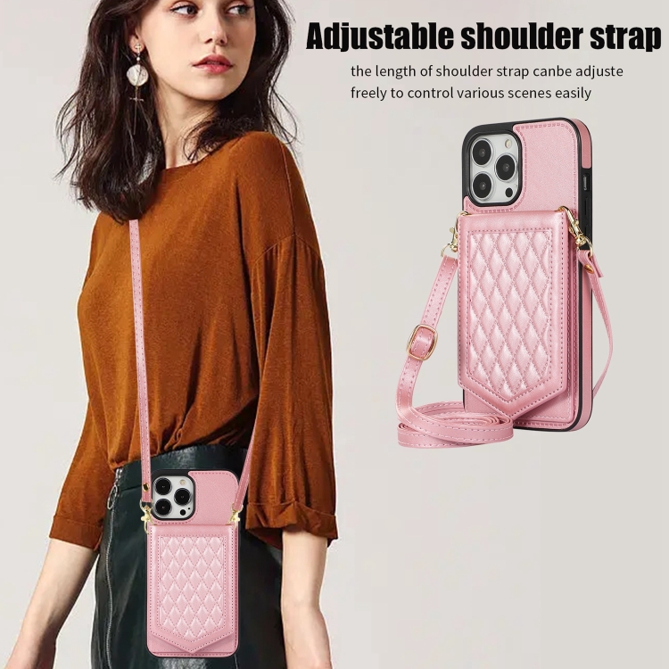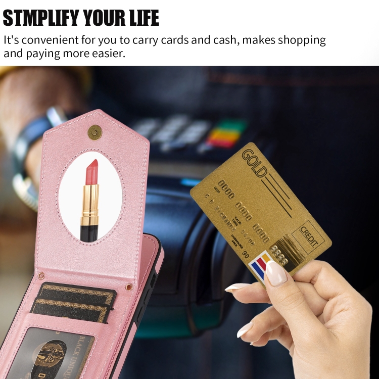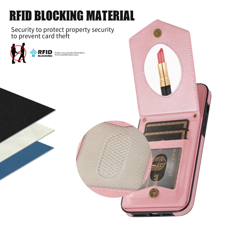 Funda para iPhone 6S Plus 6 Plus Rhombic Texture Rfid con Cordón y Espejo (Oro Rosa)