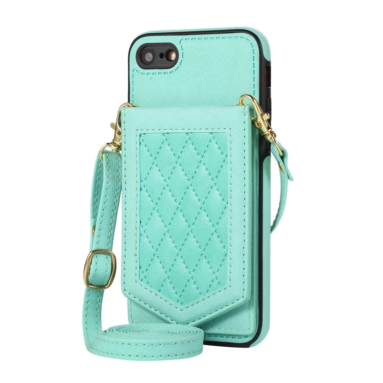Funda para iPhone 6S Plus y 6 Plus Rhombic Texture Rfid con Cordón y Espejo (Verde Menta)