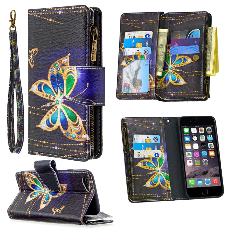 Funda de Cuero iPhone 6S y 6 Patrón Dibujo Colores Cremallera Tapa Horizontal Soporte Ranuras Tarjetas Billetera (Mariposa Grande)