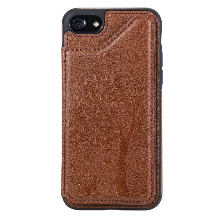Título optimizado: Estuche protector para iPhone 7/8 con patrón relieve árbol de gato, ranuras para tarjetas y marco de fotos (Marrón)