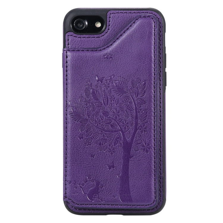 Funda Protectora para iPhone 7/8 Patrón Relieve Árbol Gato Ranuras Tarjetas Marco Fotos (Morado)