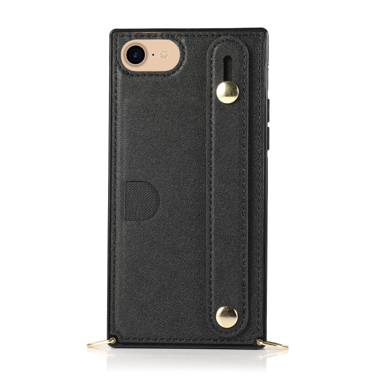 Correa de Muñeca PU + Estuche TPU para iPhone 7/8/SE 2020 a Prueba de Golpes con Cordón Cruzado Soporte y Ranura para Tarjeta (Negro)