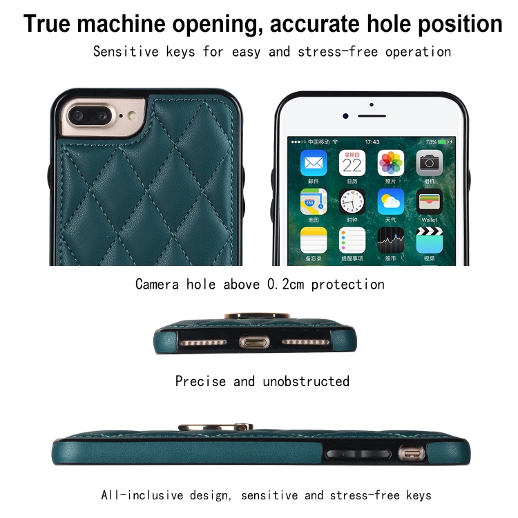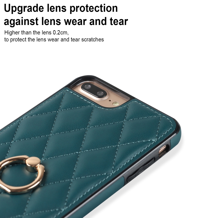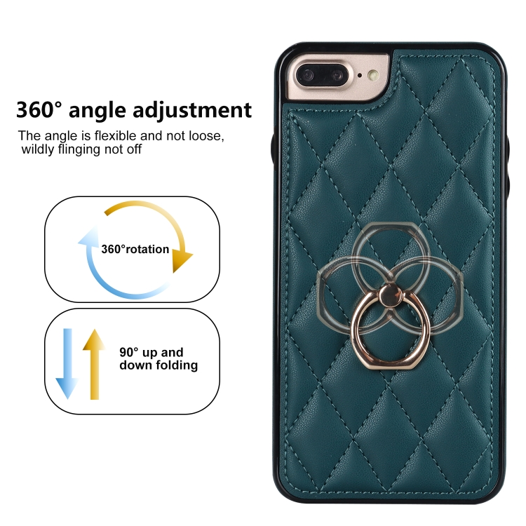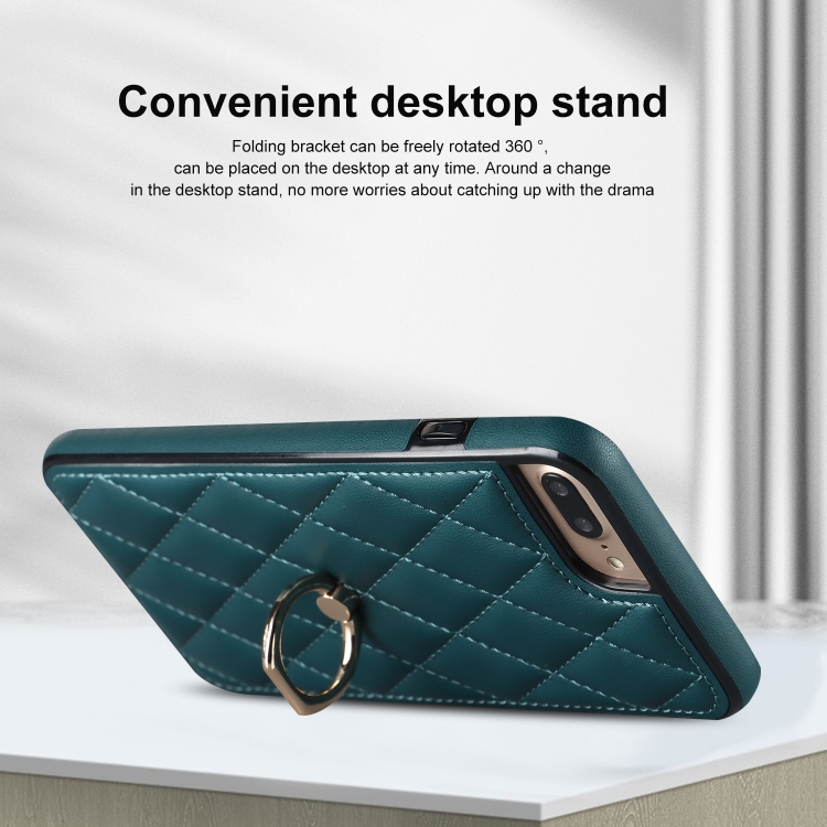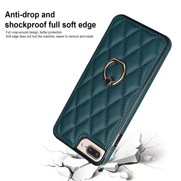 Estuche de teléfono para iPhone 7 Plus y 8 Plus Cuero PU Rómbico con soporte para anillo (Verde)