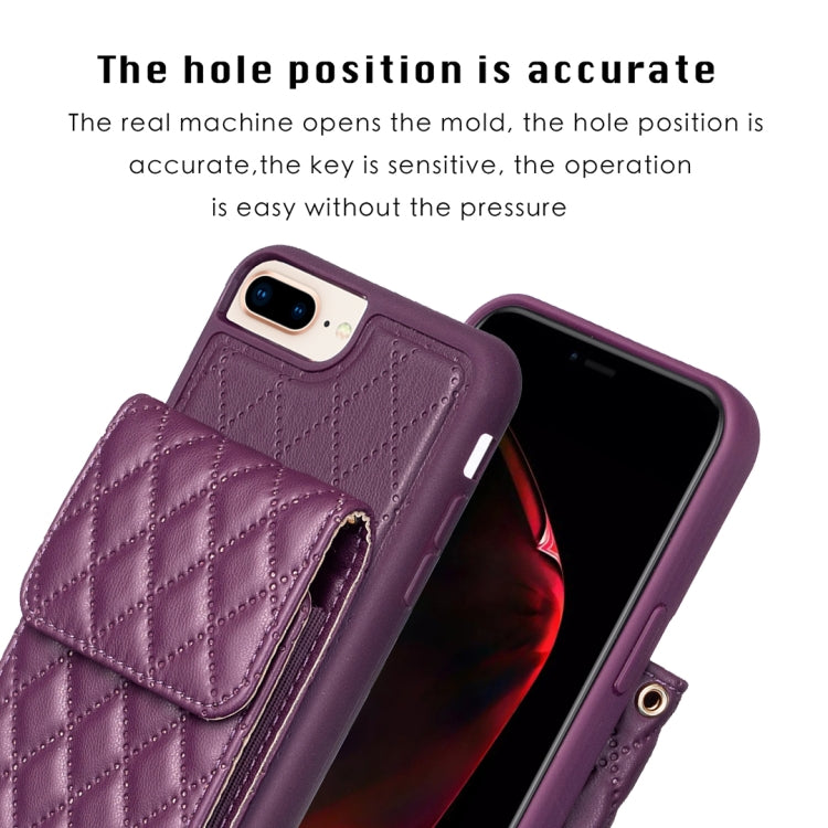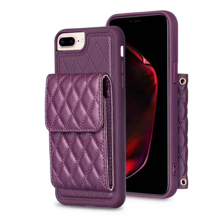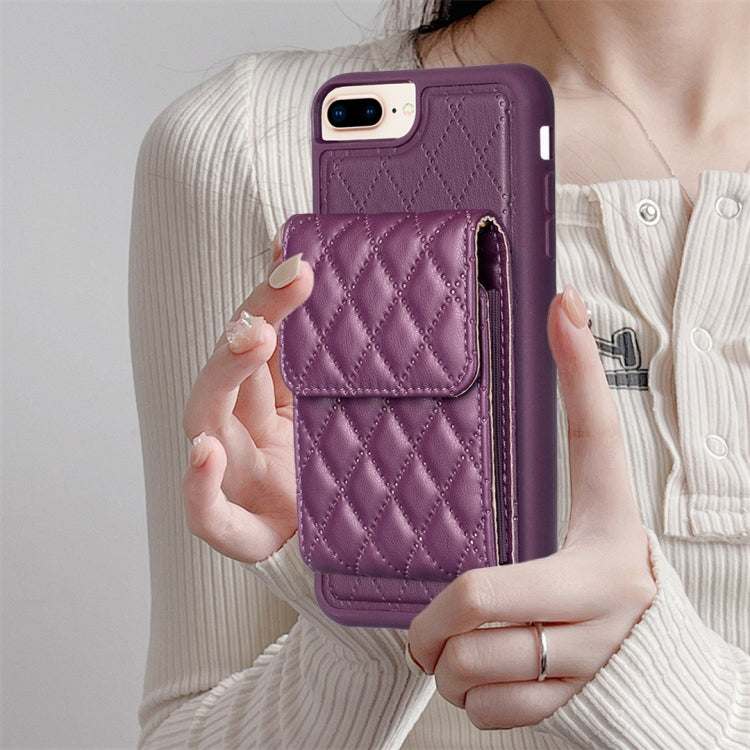 Estuche de Teléfono iPhone 7 Plus 8 Plus Cuero Rómbico con Billetera Vertical (Púrpura Oscuro)