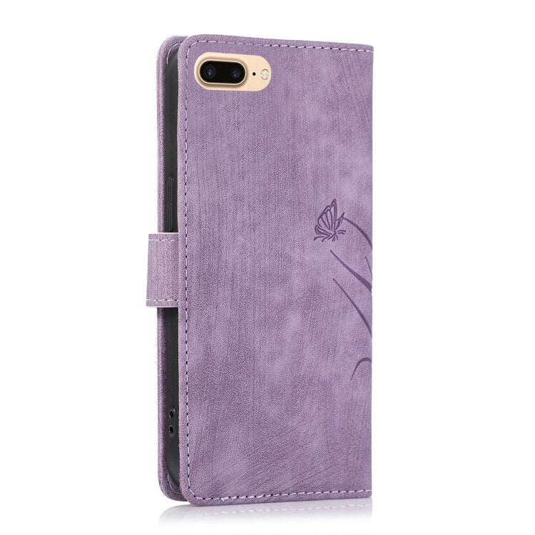 Funda para Teléfono iPhone 7 Plus/8 Plus Cuero Relieve Mariposa Orquídea (Púrpura)