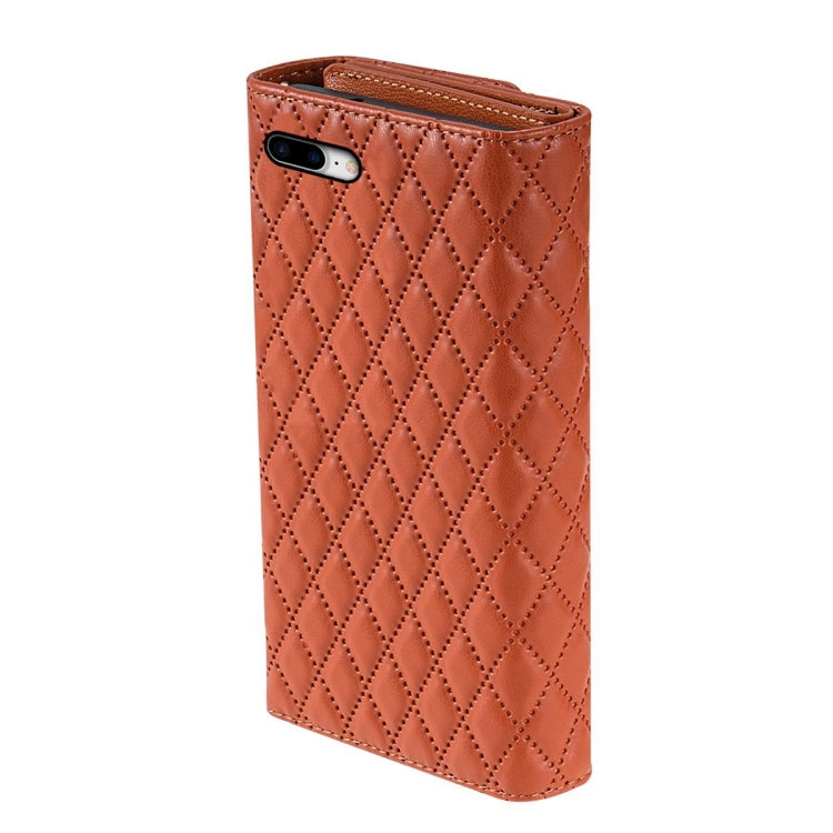 Funda para Teléfono iPhone 7 Plus/8 Plus Cuero Rómbico Billetera MultiTarjeta Cremallera (Marrón)