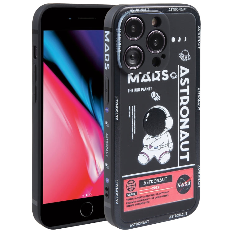 Funda de teléfono para iPhone 7 Plus y 8 Plus Mars Astronaut patrón borde recto silicona (Black)