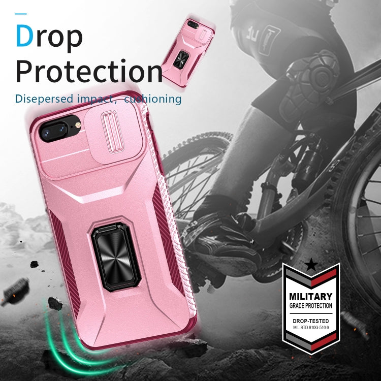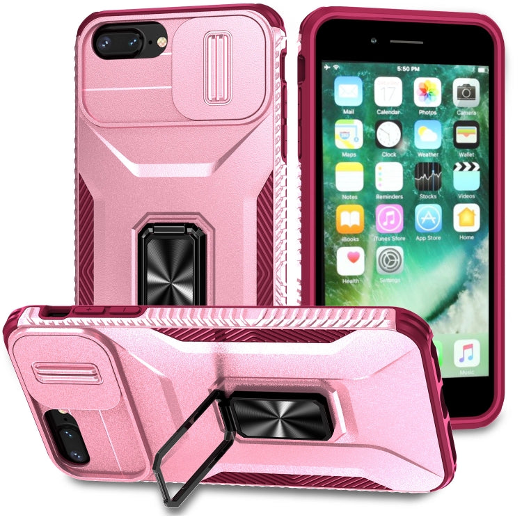 Estuche para Teléfono iPhone 7 Plus con Soporte Deslizante para Levas (Rosa + Rojo Rosa)
