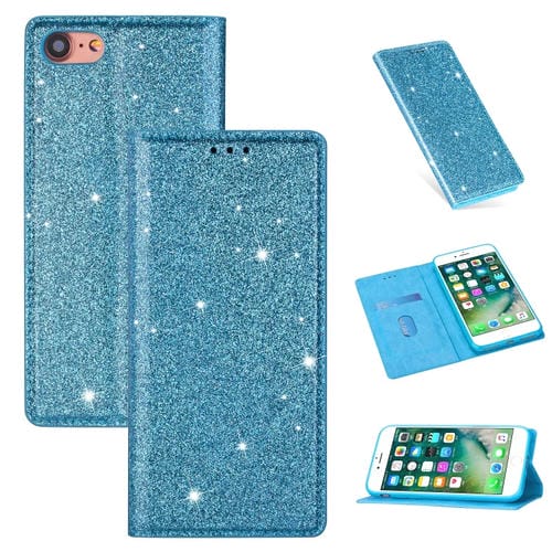 Estuche de Cuero para iPhone 8/7 con Tapa Horizontal Magnética Ultradelgada Purpurina Soporte y Ranuras para Tarjetas (Azul Cielo)