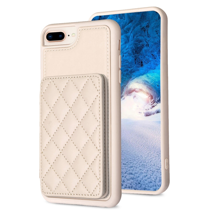 Funda para iPhone 8 Plus y 7 Plus Bf25 Square Plaid Porta Tarjetas (Beige)