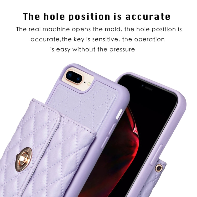 Cartera para iPhone 8 Plus / 7 Plus con Hebilla de Metal Horizontal Estuche de Cuero Rómbico (Púrpura)